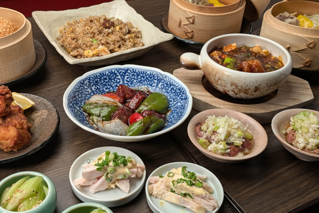 ● 前菜3種盛 ● 点心 ● 揚げ物 ●逸品 ●ホルモン麻婆豆腐 ●麺 or 飯 ●デザート