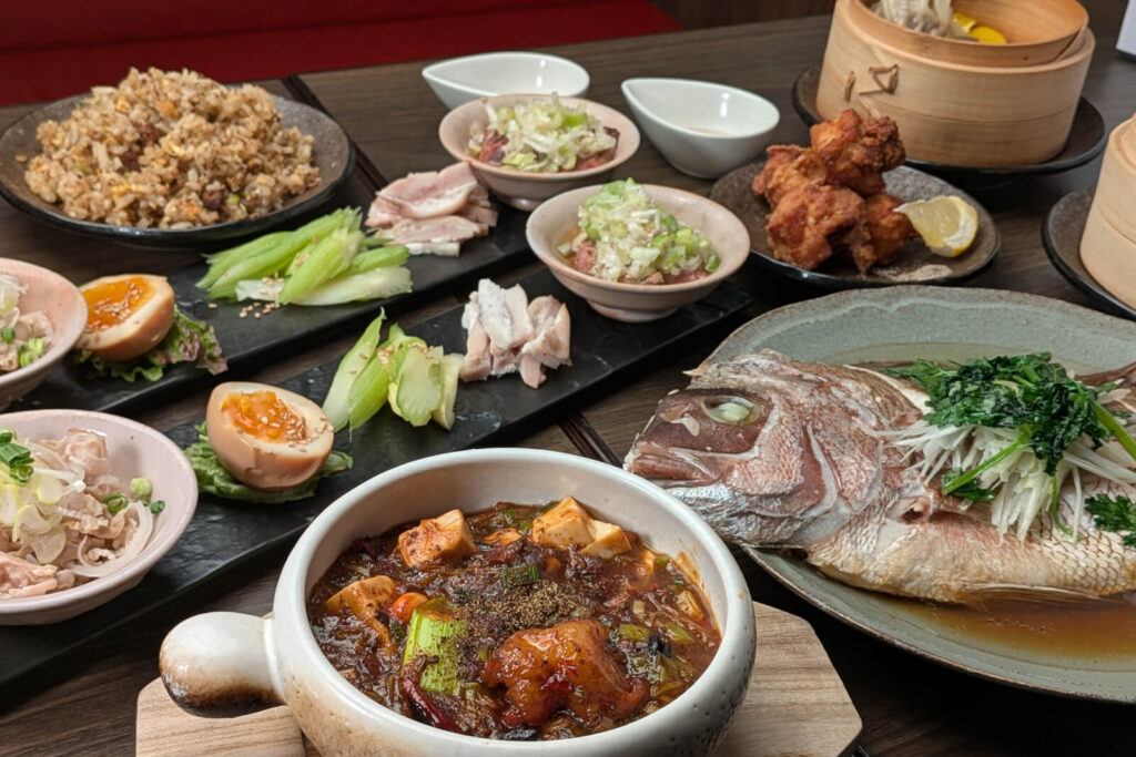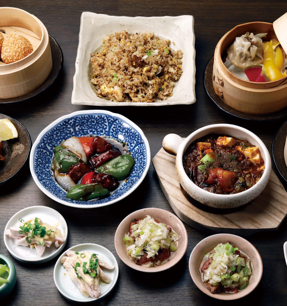 ● 前菜5種盛 ● 点心 ● 揚げ物 ● ホルモン麻婆豆腐 ● 鮮魚の逸品 ● 麺 or 飯 ● デザート